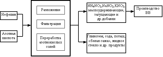 Создание производства простейших взрывчатых веществ (ВВ) для горнодобывающей промышленности Краткое описание и техническая характеристика. В настоящее время горнодобывающая промышленность широко использует простейшие ВВ местного изготовления. Практически все неорганические компоненты этих ВВ могут быть получены на основе азотнокислой технологии нефелина.