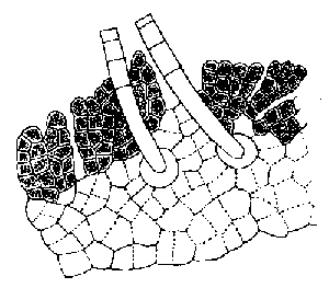 Phaeostroma pustulosum![]() Часть слоевища Нитевидное слоевище, стелющееся по поверхности, нити образуют рыхлые скопление, боковые ответвления отходят под прямым углом, нити 6—8 мкм толщины. Многоклетные спорангии собраны в скопления 8—16 мкм. На водорослях, гидроидах.
