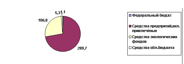 Динамика эколого-экономических показателей за 1999-2000 гг. имеет тенденцию роста. Объем капитальных вложений в 2000 году увеличился в 1,6 раза, а объем предотвращенного экологического ущерба - в 2,3 раза. Финансирование природоохранной деятельности. В 2000 году на охрану окружающей природной среды из всех источников финансирования направлено 1281,5 млн. руб., что на 294,3 млн. руб. больше, чем в 1999 году. Основной объем затрат на природоохранные цели распределяется следующим образом: