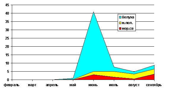 - на морских тонях (МТ) Белого моря - 38,79 т (13403 экз.).