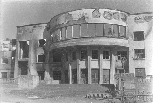 Дом Культуры после прямого попадания фугасной бомбы / The House of Culture after the direct hit of demolition bomb.